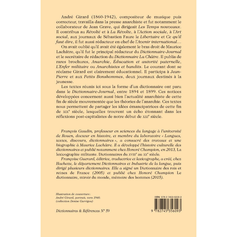Les textes réunis ici sous la forme d’un dictionnaire ont paru dans le Dictionnaire-Journal, entre 1894 et 1899. Ces notices développées concernent aussi bien l’actualité anarchiste de cette fin de siècle mouvementée que les théories de l’anarchie. Ces textes nous permettent de partager les idées émancipatrices de cette fin de XIXe siècle, lesquelles trouvent un écho étonnant dans les réflexions post-capitalistes de notre début de XXIe siècle.