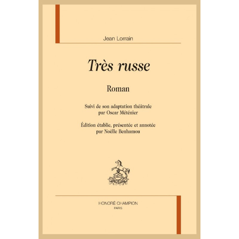 Très Russe, deuxième roman de Jean Lorrain, évoque les amours de Madame Livitinof et du poète Allain Mauriat sur la côte normande. Publié en 1886, ce roman à clef provoqua la colère de Maupassant qui s’y reconnut sous les traits du ridicule Beaufrilan, tombé lui aussi sous le charme de Madame Livitinof, double de la Comtesse Potocka. Si le duel n’eut finalement pas lieu, il occulta la qualité du roman et des trois nouvelles qui l’accompagnent : « Holly Rodays », « À la mer » et « Esthéticité », qui tracent un portrait au vitriol de la haute société et du demi-monde. En 1893, Jean Lorrain aidé par Oscar Méténier adapta le roman à la scène. Cette pièce, reproduite ici pour la première fois depuis la fin du XIXe siècle, montre combien Lorrain s’est livré à une réécriture moderne du Misanthrope de Molière. Devenu très rare en librairie depuis une douzaine d’années, ce roman, suivi de son adaptation scénique, dont nous avons établi la première édition critique, mérite d’être à nouveau offert au public.