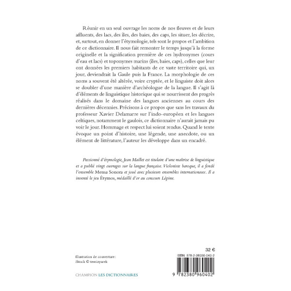 Réunir en un seul ouvrage les noms de nos fleuves et de leurs affluents, des lacs, des îles, des baies, des caps, les situer, les décrire, et, surtout, en donner l’étymologie, tels sont le propos et l’ambition de ce dictionnaire. Il nous fait remonter le temps jusqu’à la forme originelle et la signification première de ces hydronymes (cours d’eau et lacs) et toponymes marins (îles, baies, caps), celles que leur ont données les premiers habitants de ce vaste territoire qui, un jour, deviendrait la Gaule puis la France. La morphologie de ces noms a souvent été altérée, voire cryptée, et le linguiste doit alors se doubler d’une manière d’archéologue de la langue. Il s’agit là d’éléments de linguistique historique qui se nourrissent des progrès réalisés dans le domaine des langues anciennes au cours des dernières décennies. Précisons à ce propos que sans les travaux du professeur Xavier Delamarre sur l’indo-européen et les langues celtiques, notamment le gaulois, ce dictionnaire n’aurait jamais pu voir le jour. Hommage et respect lui soient rendus. Quand le texte évoque un point d’histoire, une légende, une anecdote, ou un élément de littérature, l’auteur les développe dans un encadré.