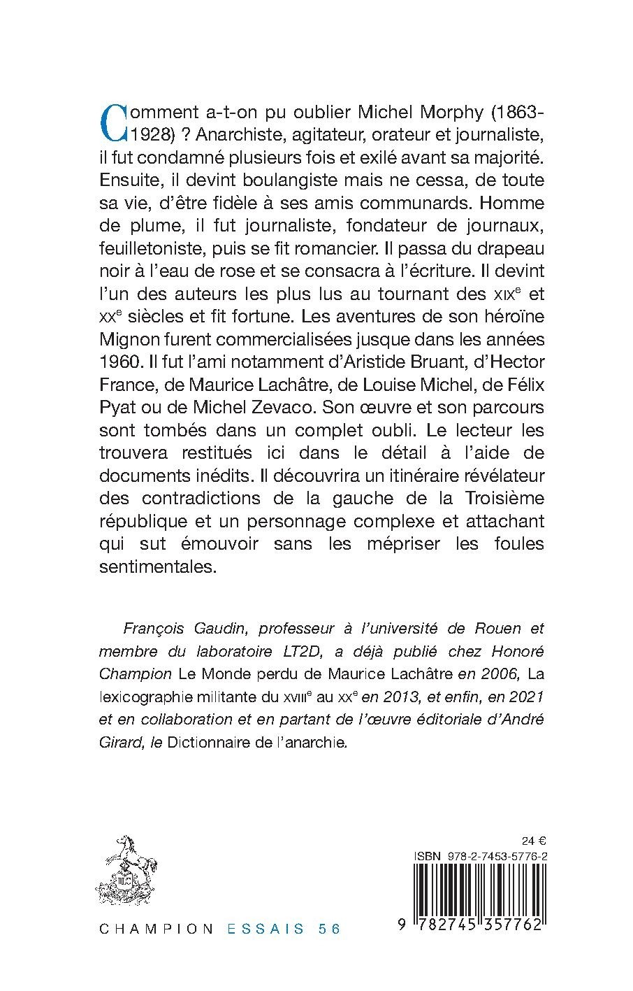 François Gaudin, professeur à l’université de Rouen et membre du laboratoire LT2D, a déjà publié chez Honoré Champion Le Monde perdu de Maurice Lachâtre en 2006, La lexicographie militante du XVIIIe au XXe en 2013, et enfin, en 2021 et en collaboration et en partant de l’œuvre éditoriale d’André Girard, le Dictionnaire de l’anarchie.