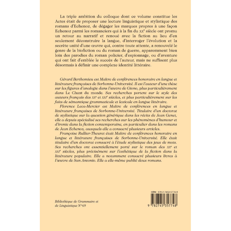 | Collection | BIBLIOTHEQUE DE GRAMMAIRE ET DE LINGUISTIQUE |