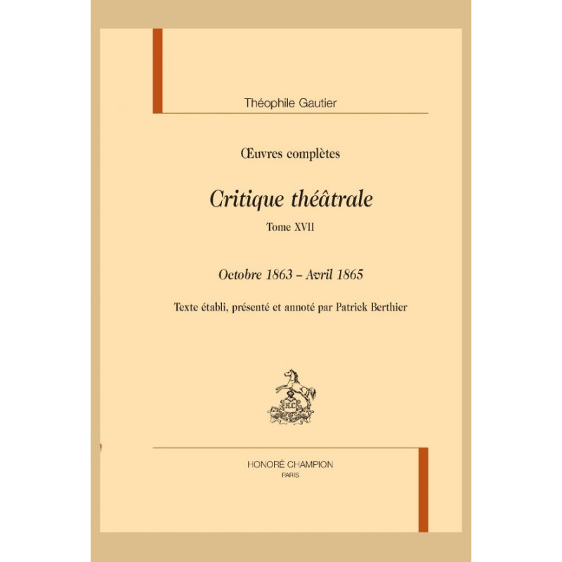 Comme pour les seize volumes publiés depuis 2007, le texte a été établi avec soin et annoté en vue de souligner la richesse de ce regard exceptionnel sur l’histoire du théâtre vivant au XIXe siècle.