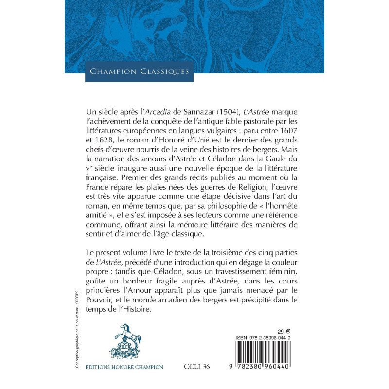 Le présent volume livre le texte de la troisième des cinq parties de L’Astrée, précédé d’une introduction qui en dégage la couleur propre : tandis que Céladon, sous un travestissement féminin, goûte un bonheur fragile auprès d’Astrée, dans les cours princières l’Amour apparaît plus que jamais menacé par le Pouvoir, et le monde arcadien des bergers est précipité dans le temps de l’Histoire.