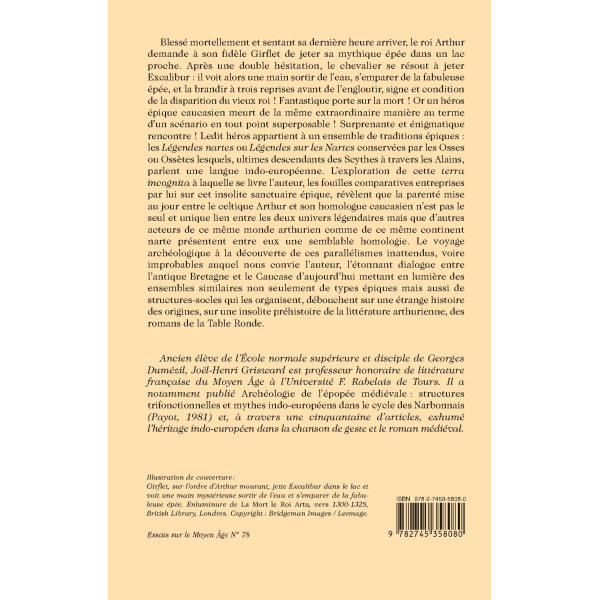 Blessé mortellement et sentant sa dernière heure arriver, le roi Arthur demande à son fidèle Girflet de jeter sa mythique épée dans un lac proche. Après une double hésitation, le chevalier se résout à jeter Excalibur : il voit alors une main sortir de l’eau, s’emparer de la fabuleuse épée, et la brandir à trois reprises avant de l’engloutir, signe et condition de la disparition du vieux roi ! Fantastique porte sur la mort ! Or un héros épique caucasien meurt de la même extraordinaire manière au terme d’un scénario en tout point superposable ! Surprenante et énigmatique rencontre ! Ledit héros appartient à un ensemble de traditions épiques : les Légendes nartes ou Légendes sur les Nartes conservées par les Osses ou Ossètes lesquels, ultimes descendants des Scythes à travers les Alains, parlent une langue indo-européenne. L’exploration de cette terra incognita à laquelle se livre l’auteur, les fouilles comparatives entreprises par lui sur cet insolite sanctuaire épique, révèlent que la parenté mise au jour entre le celtique Arthur et son homologue caucasien n’est pas le seul et unique lien entre les deux univers légendaires mais que d’autres acteurs de ce même monde arthurien comme de ce même continent narte présentent entre eux une semblable homologie. Le voyage archéologique à la découverte de ces parallélismes inattendus, voire improbables auquel nous convie l’auteur, l’étonnant dialogue entre l’antique Bretagne et le Caucase d’aujourd’hui mettant en lumière des ensembles similaires non seulement de types épiques mais aussi de structures-socles qui les organisent, débouchent sur une étrange histoire des origines, sur une insolite préhistoire de la littérature arthurienne, des romans de la Table Ronde.