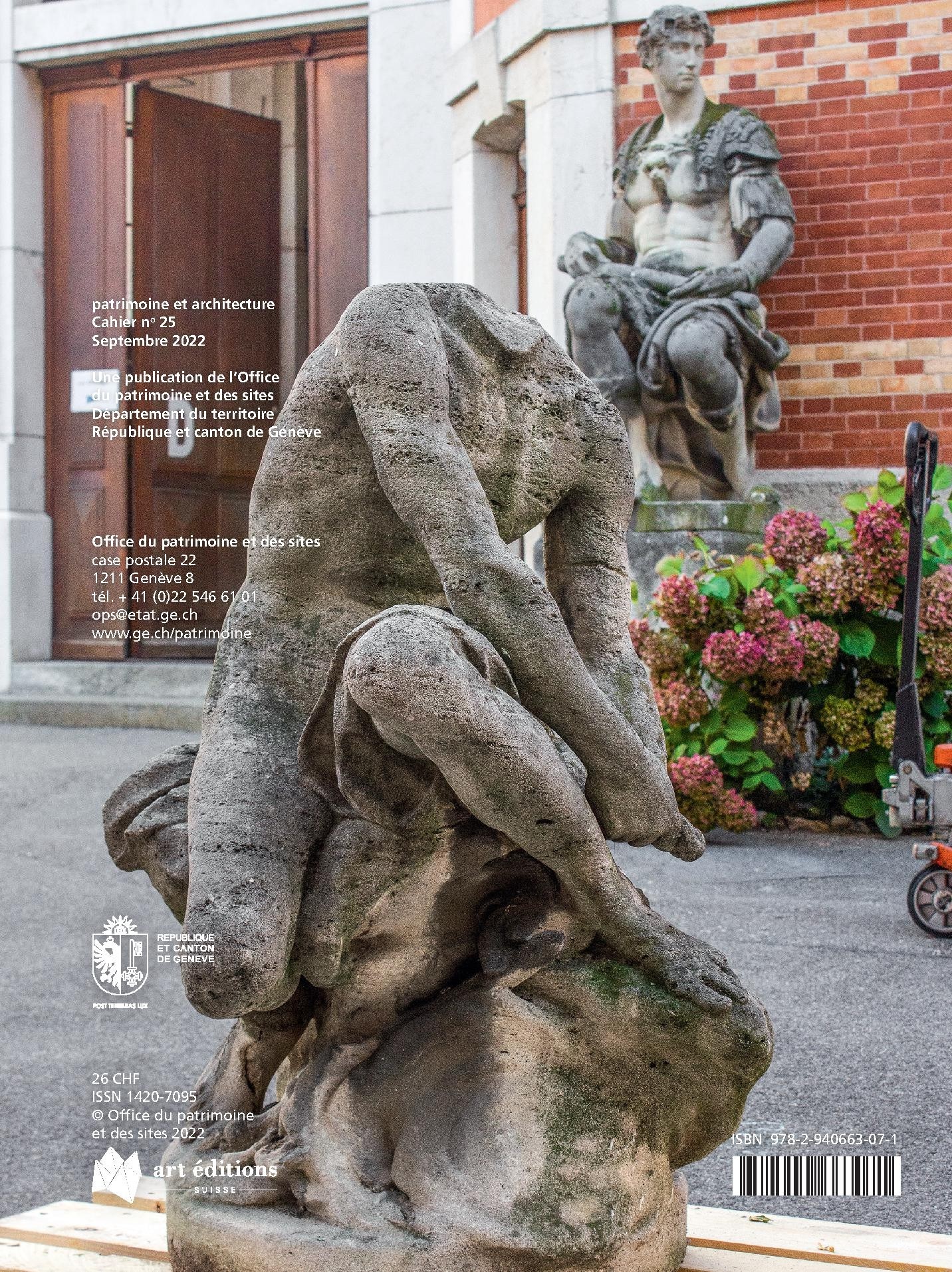 Ce nouveau numéro de la revue Patrimoine et Architecture, éditée par le département du territoire du canton de Genève, rend compte des études historiques conduites par l'office du patrimoine et des sites et par l'unité de conservation du patrimoine architectural de la Ville de Genève.