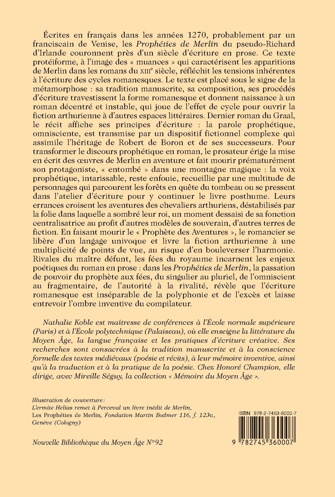 Écrites en français dans les années 1270, probablement par un franciscain de Venise, les Prophéties de Merlin du pseudo-Richard d’Irlande couronnent près d’un siècle d’écriture en prose. Ce texte protéiforme, à l’image des « muances » qui caractérisent les apparitions de Merlin dans les romans du XIIIe siècle, réfléchit les tensions inhérentes à l’écriture des cycles romanesques. Le texte est placé sous le signe de la métamorphose : sa tradition manuscrite, sa composition, ses procédés d’écriture travestissent la forme romanesque et donnent naissance à un roman décentré et instable, qui joue de l’effet de cycle pour ouvrir la fiction arthurienne à d’autres espaces littéraires. Dernier roman du Graal, le récit affiche ses principes d’écriture : la parole prophétique, omnisciente, est transmise par un dispositif fictionnel complexe qui assimile l’héritage de Robert de Boron et de ses successeurs. Pour transformer le discours prophétique en roman, le prosateur érige la mise en écrit des œuvres de Merlin en aventure et fait mourir prématurément son protagoniste, « entombé » dans une montagne magique : la voix prophétique, intarissable, reste enfouie, recueillie par une multitude de personnages qui parcourent les forêts en quête du tombeau ou se pressent dans l’atelier d’écriture pour y continuer le livre posthume. Leurs errances croisent les aventures des chevaliers arthuriens, déstabilisés par la folie dans laquelle a sombré leur roi, un moment dessaisi de sa fonction centralisatrice au profit d’autres modèles de souverain, d’autres terres de fiction. En faisant mourir le « Prophète des Aventures », le romancier se libère d’un langage univoque et livre la fiction arthurienne à une multiplicité de points de vue, au risque d’en bouleverser l’harmonie. Rivales du maître défunt, les fées du royaume incarnent les enjeux poétiques du roman en prose : dans les Prophéties de Merlin, la passation de pouvoir du prophète aux fées, du singulier au pluriel, de l’omniscient au fragmentaire, de l’autorité à la rivalité, révèle que l’écriture romanesque est inséparable de la polyphonie et de l’excès et laisse entrevoir l’ombre inventive du compilateur.