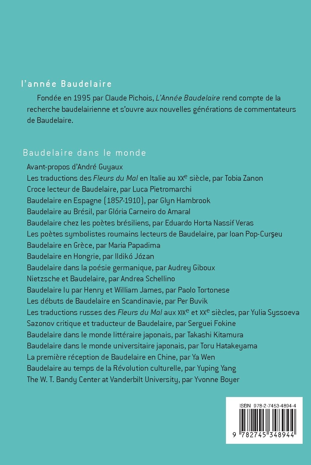 Baudelaire en Espagne (1857-1910), par Glyn Hambrook Baudelaire au Brésil, par Glória Carneiro do Amaral