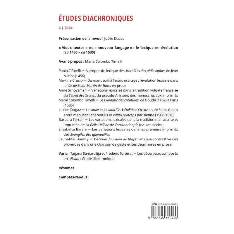 | Collection | ETUDES DIACHRONIQUES |