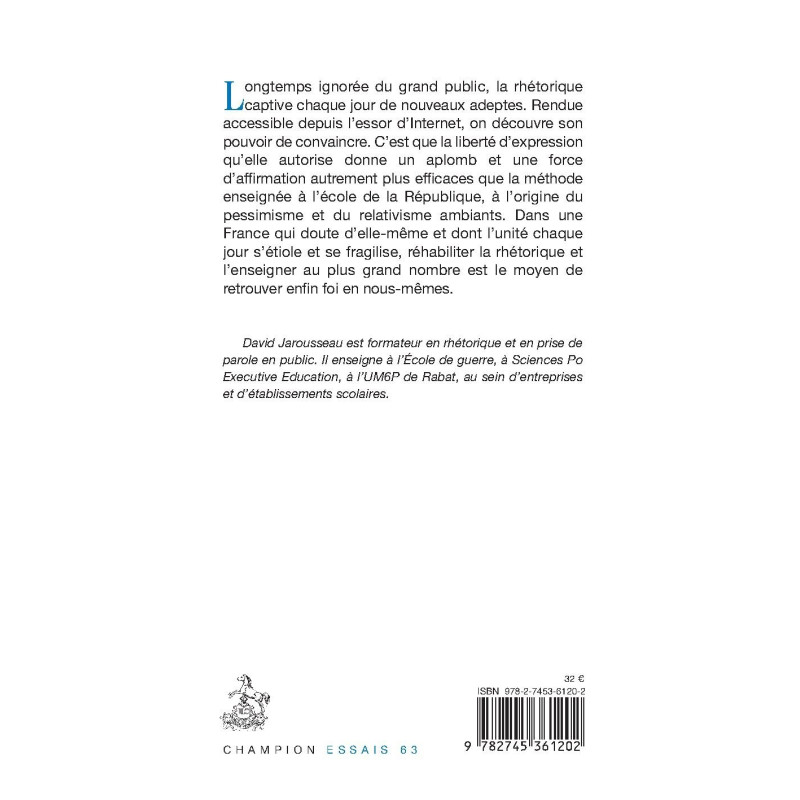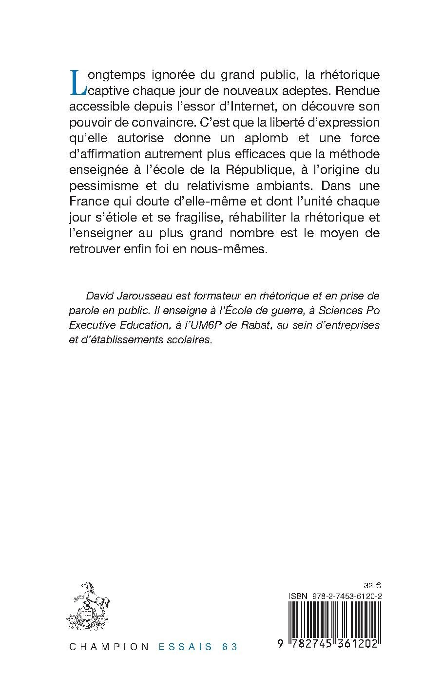 Longtemps ignorée du grand public, la rhétorique captive chaque jour de nouveaux adeptes. Rendue accessible depuis l’essor d’Internet, on découvre son pouvoir de convaincre. C’est que la liberté d’expression qu’elle autorise donne un aplomb et une force d’affirmation autrement plus efficaces que la méthode enseignée à l’école de la République, à l’origine du pessimisme et du relativisme ambiants. Dans une France qui doute d’elle-même et dont l’unité chaque jour s’étiole et se fragilise, réhabiliter la rhétorique et l’enseigner au plus grand nombre est le moyen de retrouver enfin foi en nous-mêmes.
