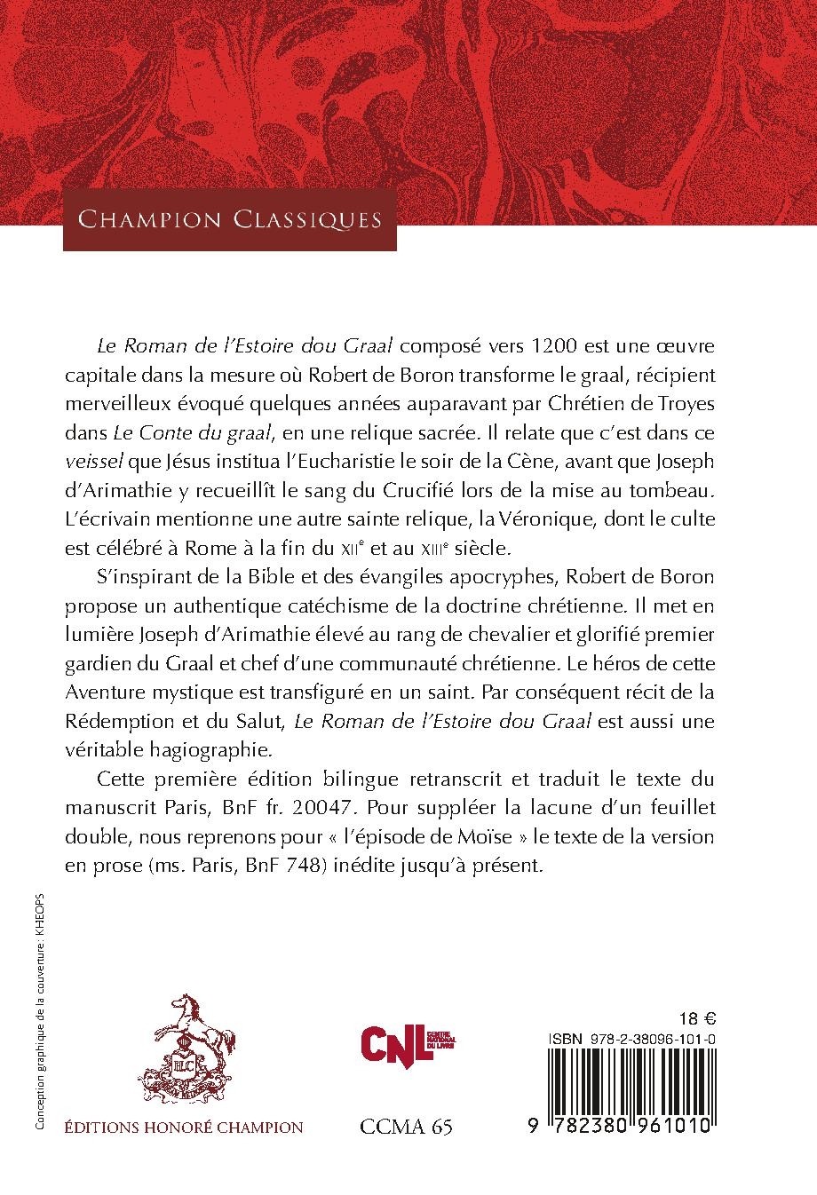 S’inspirant de la Bible et des évangiles apocryphes, Robert de Boron propose un authentique catéchisme de la doctrine chrétienne. Il met en lumière Joseph d’Arimathie élevé au rang de chevalier et glorifié premier gardien du Graal et chef d’une communauté chrétienne. Le héros de cette Aventure mystique est transfiguré en un saint. Par conséquent récit de la Rédemption et du Salut, Le Roman de l’Estoire dou Graal est aussi une véritable hagiographie. Cette première édition bilingue retranscrit et traduit le texte du manuscrit Paris, BnF fr. 20047. Pour suppléer la lacune d’un feuillet double, nous reprenons pour « l’épisode de Moïse » le texte de la version en prose (ms. Paris, BnF 748) inédite jusqu’à présent.