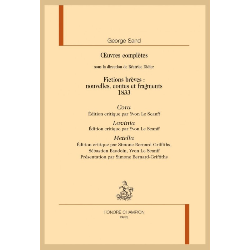 Simone Bernard-Griffiths, Professeure des universités, a consacré à George Sand quatre recueils collectifs et plus d’une soixantaine de chapitres d’ouvrages et articles. Elle a co-dirigé le Dictionnaire George Sand (Honoré Champion, 2. vols, 2015 et Champion Classiques « Références et Dictionnaires » n° 17, 1 vol., 2020) et co-édité La Marquise (George Sand, Œuvres complètes, Fictions brèves : nouvelles, contes et fragments, 1832, Honoré Champion, 2021).