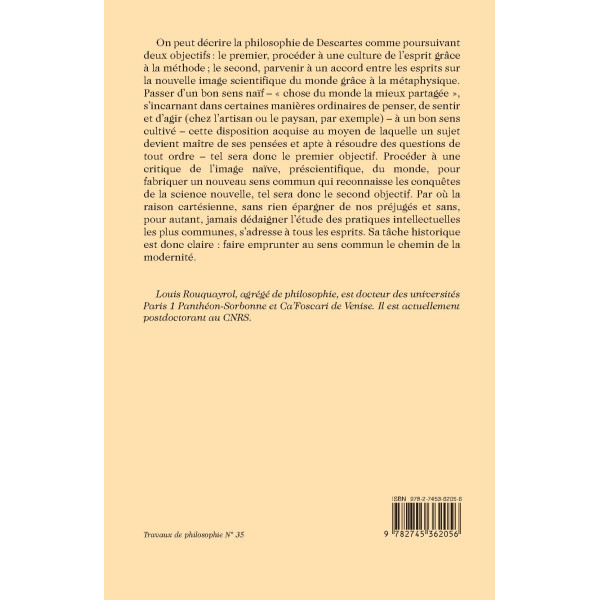 On peut décrire la philosophie de Descartes comme poursuivant deux objectifs : le premier, procéder à une culture de l’esprit grâce à la méthode ; le second, parvenir à un accord entre les esprits sur la nouvelle image scientifique du monde grâce à la méta physique. Passer d’un bon sens naïf – « chose du monde la mieux partagée », s’incarnant dans certaines manières ordinaires de penser, de sentir et d’agir (chez l’artisan ou le paysan, par exemple) – à un bon sens cultivé – cette disposition acquise au moyen de laquelle un sujet devient maître de ses pensées et apte à résoudre des questions de tout ordre – tel sera donc le premier objectif. Procéder à une critique de l’image naïve, préscientifique, du monde, pour fabriquer un nouveau sens commun qui reconnaisse les conquêtes de la science nouvelle, tel sera donc le second objectif. Par où la raison cartésienne, sans rien épargner de nos préjugés et sans, pour autant, jamais dédaigner l’étude des pratiques intellectuelles les plus communes, s’adresse à tous les esprits. Sa tâche historique est donc claire : faire emprunter au sens commun le chemin de la modernité.