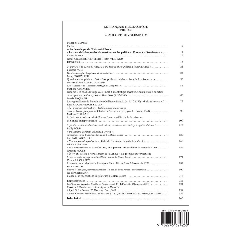 | Collection | LE FRANCAIS PRECLASSIQUE |