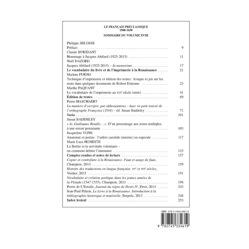| Collection | LE FRANCAIS PRECLASSIQUE |