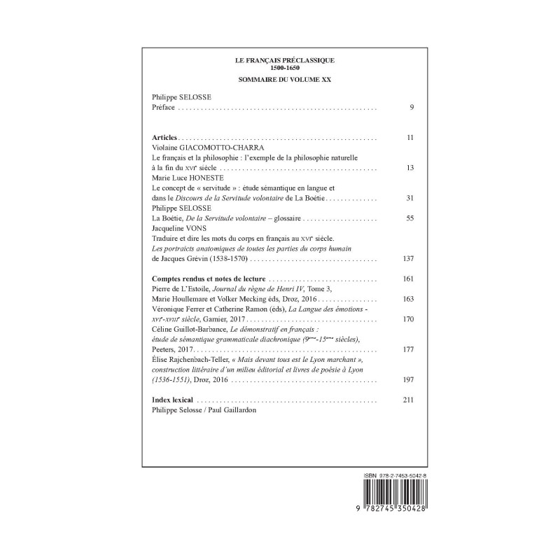 | Collection | LE FRANCAIS PRECLASSIQUE |