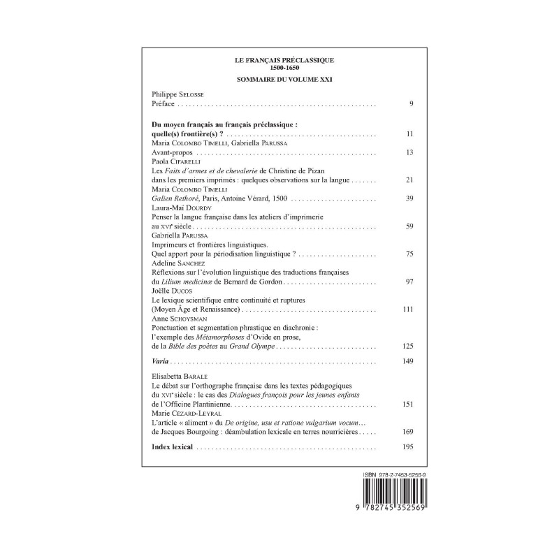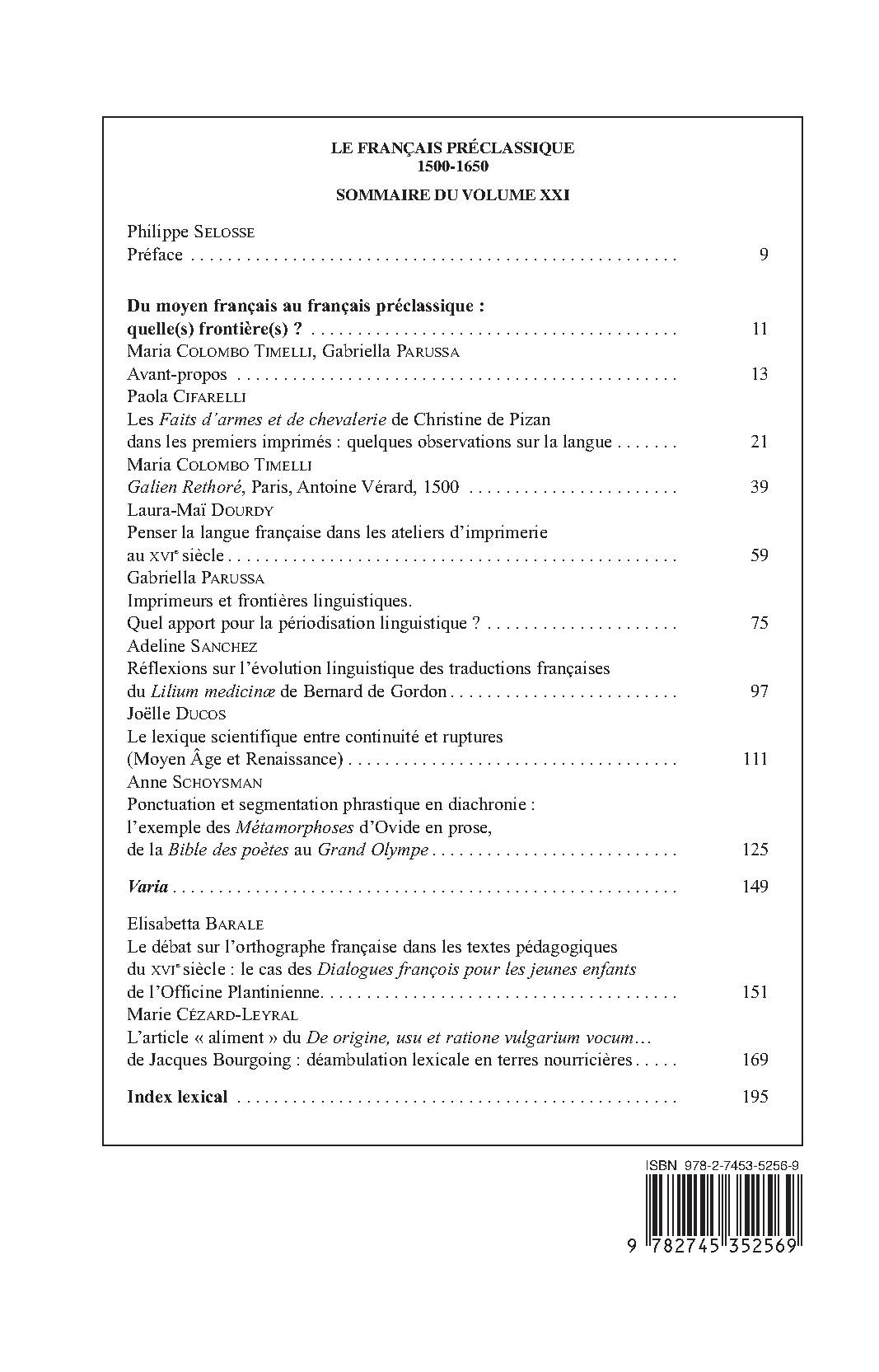 | Collection | LE FRANCAIS PRECLASSIQUE |