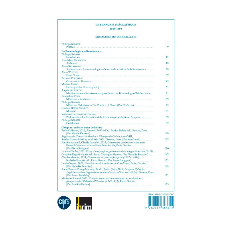| Collection | LE FRANCAIS PRECLASSIQUE |