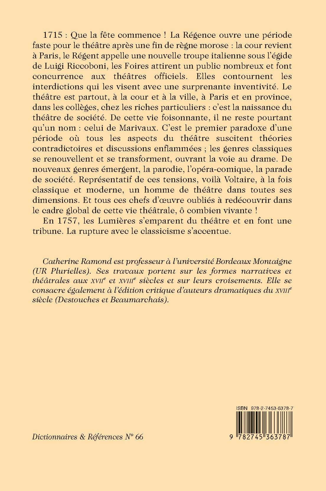 1715 : Que la fête commence ! La Régence ouvre une période faste pour le théâtre après une fin de règne morose : la cour revient à Paris, le Régent appelle une nouvelle troupe italienne sous l’égide de Luigi Riccoboni, les Foires attirent un public nombreux et font concurrence aux théâtres officiels. Elles contournent les interdictions qui les visent avec une surprenante inventivité. Le théâtre est partout, à la cour et à la ville, à Paris et en province, dans les collèges, chez les riches particuliers : c’est la naissance du théâtre de société. De cette vie foisonnante, il ne reste pourtant qu’un nom : celui de Marivaux. C’est le premier paradoxe d’une période où tous les aspects du théâtre suscitent théories contradictoires et discussions enflammées ; les genres classiques se renouvellent et se transforment, ouvrant la voie au drame. De nouveaux genres émergent, la parodie, l’opéra-comique, la parade de société. Représentatif de ces tensions, voilà Voltaire, à la fois classique et moderne, un homme de théâtre dans toutes ses dimensions. Et tous ces chefs d’œuvre oubliés à redécouvrir dans le cadre global de cette vie théâtrale, ô combien vivante !