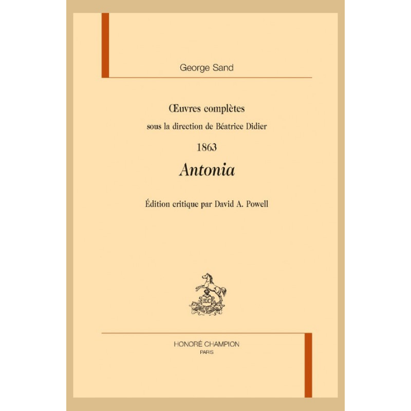 Texte quasiment oublié tant par la critique que par l’auteure, Antonia traite, à la surface, d’une relation entre un bourgeois et une aristocrate ; le veuvage et la succession de celle-ci affecteront fondamentalement la nature de la relation romantique ainsi que le commentaire concernant la société en transformation. Se situant cinq ans avant la Révolution, la diégèse mélange commentaire historico-social et expression romantique dans les couples de deux castes différentes dans un Paris bouleversé par le plan haussmannien qui, lui aussi, met en question la matérialité de propriétés, jardins et hiérarchie sociale.