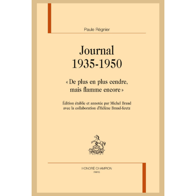 Paule Régnier est une romancière des années 1930-1940 qui a connu un certain succès avec L’Abbaye d’Evolayne (1934). Handicapée par le mal de Pott, elle tient toute sa vie un journal intime. Ce volume présente le texte intégral des derniers cahiers, de 1935 à 1950, établi sur le manuscrit conservé à la médiathèque de Charleville-Mézières.