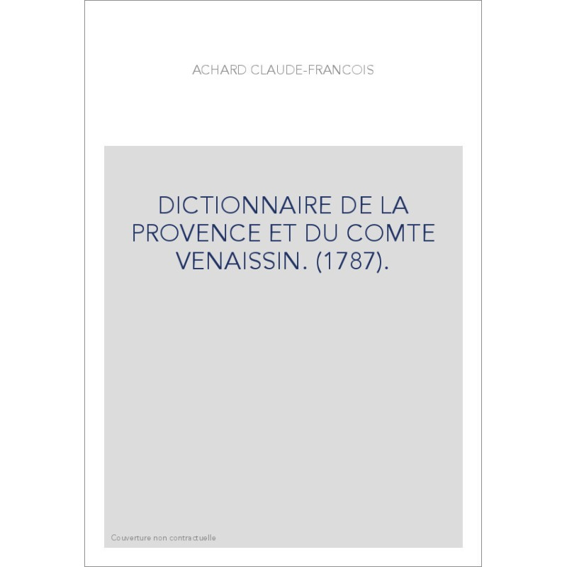 DICTIONNAIRE DE LA PROVENCE ET DU COMTE VENAISSIN. (1787).