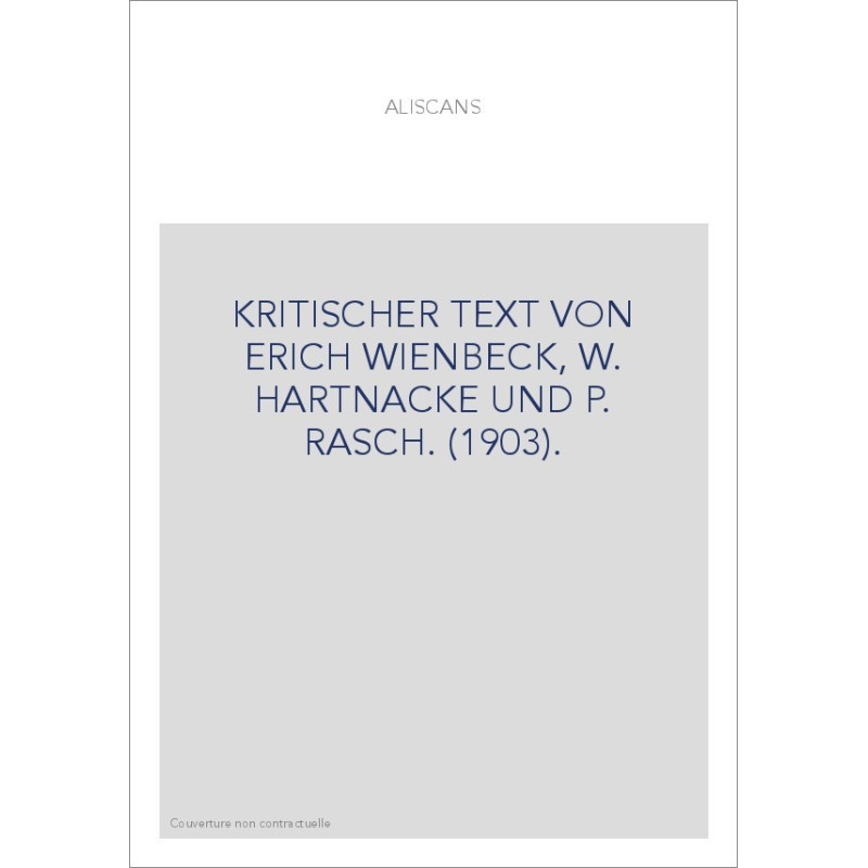 ALISCANS. KRITISCHER TEXT VON ERICH WIENBECK, W. HARTNACKE UND P. RASCH. (1903).