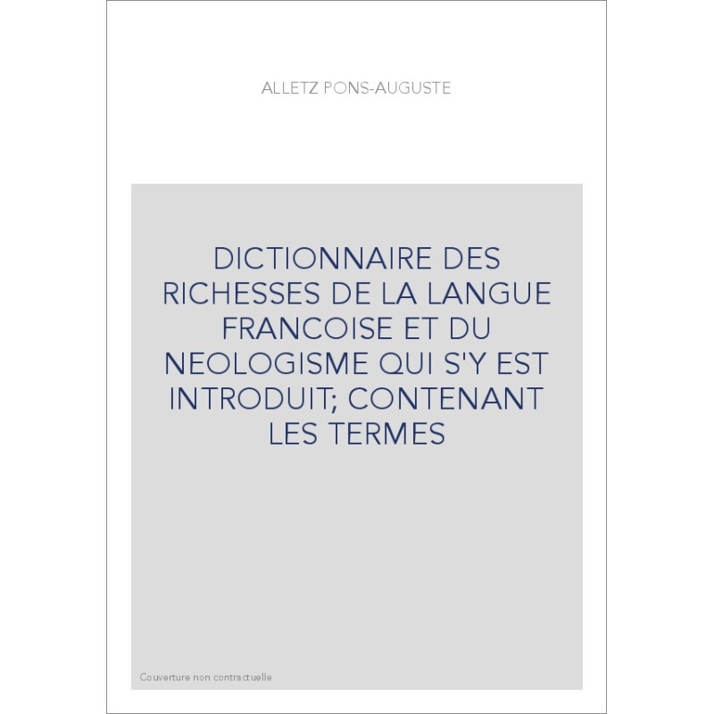 DICTIONNAIRE DES RICHESSES DE LA LANGUE FRANCOISE ET DU NEOLOGISME QUI S'Y EST INTRODUIT CONTENANT LES TERME