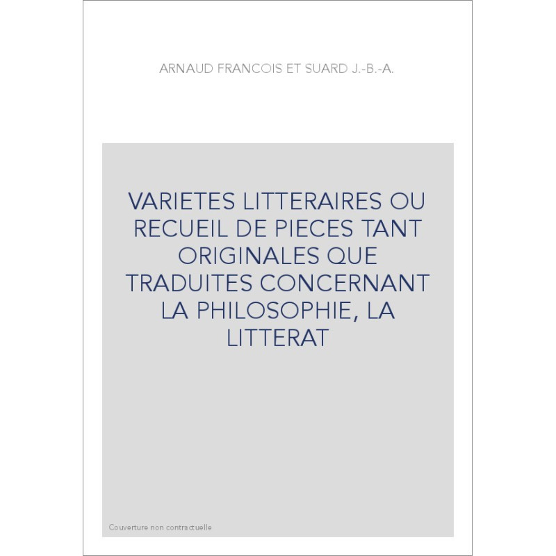 VARIETES LITTERAIRES OU RECUEIL DE PIECES TANT ORIGINALES QUE TRADUITES CONCERNANT LA PHILOSOPHIE, LA LITTERAT