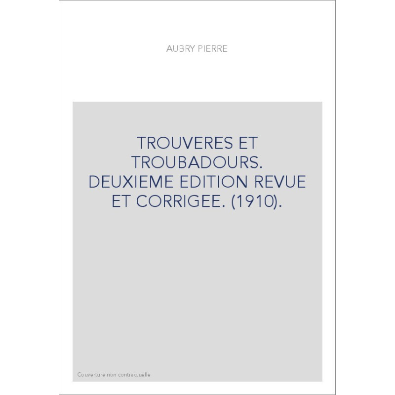 TROUVERES ET TROUBADOURS. DEUXIEME EDITION REVUE ET CORRIGEE. (1910).