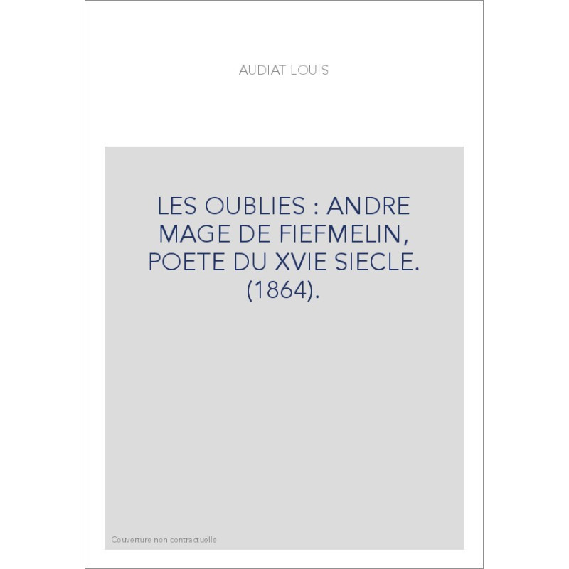 LES OUBLIÉS : ANDRÉ MAGE DE FIEFMELIN, POÈTE DU XVIE SIÈCLE. (1864).