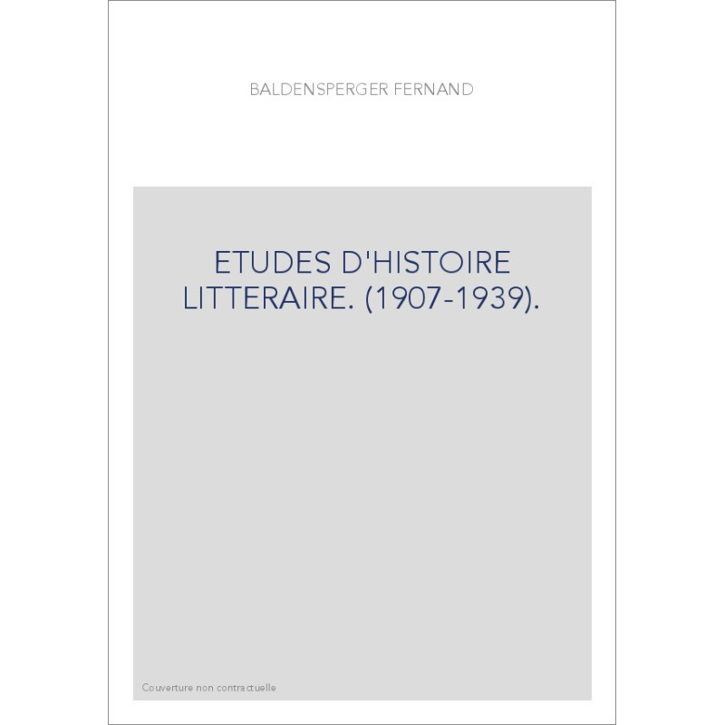 ETUDES D'HISTOIRE LITTERAIRE. (1907-1939).