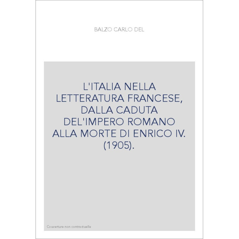 L'ITALIA NELLA LETTERATURA FRANCESE, DALLA CADUTA DEL'IMPERO ROMANO ALLA MORTE DI ENRICO IV. (1905).