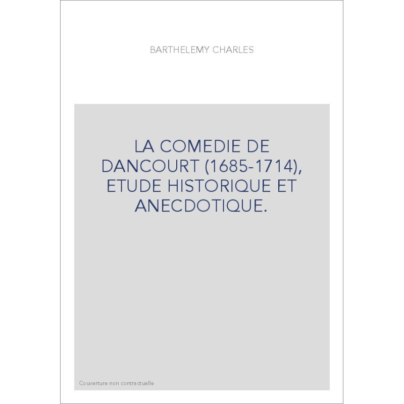 LA COMEDIE DE DANCOURT (1685-1714), ETUDE HISTORIQUE ET ANECDOTIQUE.