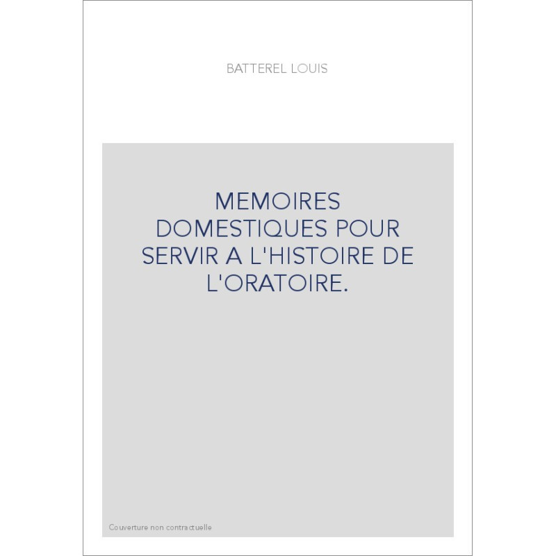 MEMOIRES DOMESTIQUES POUR SERVIR A L'HISTOIRE DE L'ORATOIRE.