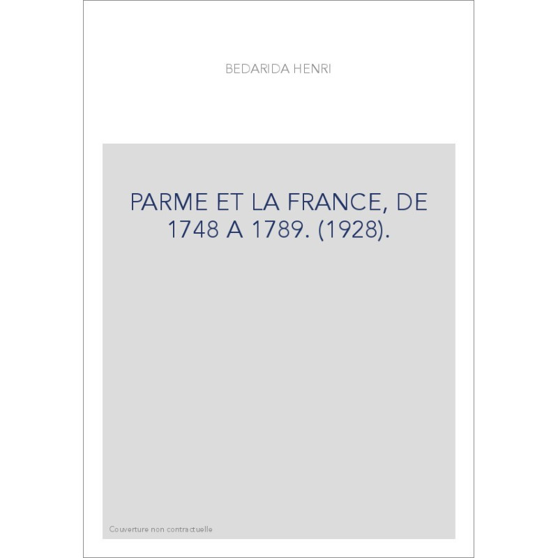 PARME ET LA FRANCE, DE 1748 A 1789. (1928).