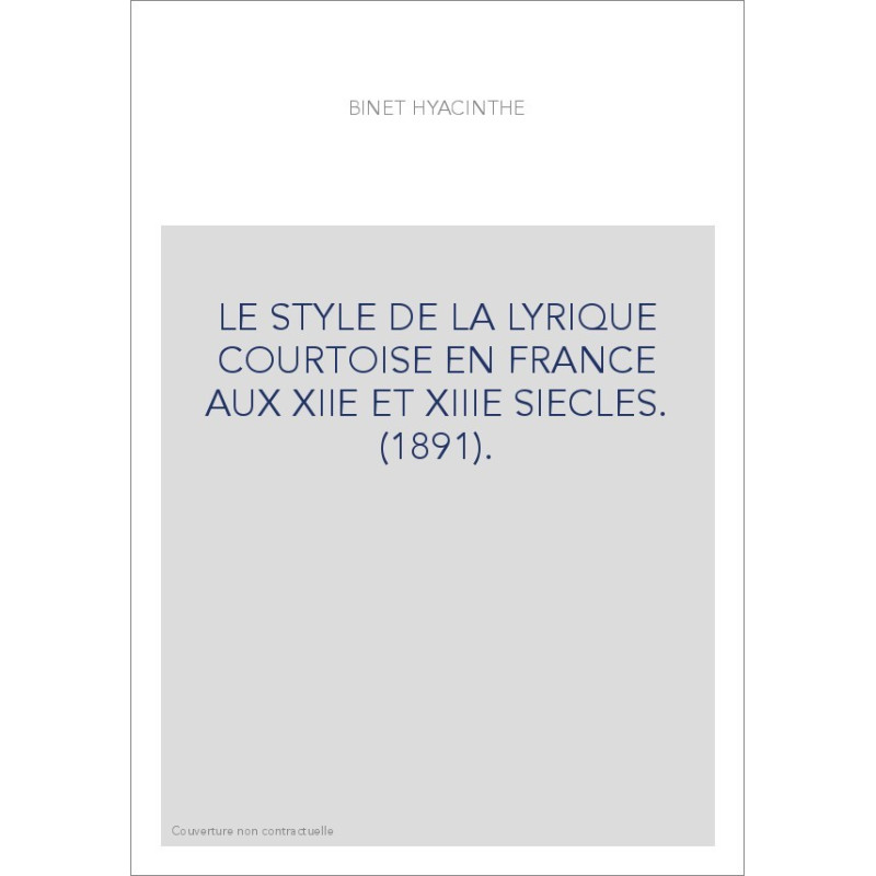 LE STYLE DE LA LYRIQUE COURTOISE EN FRANCE AUX XIIE ET XIIIE SIECLES. (1891).
