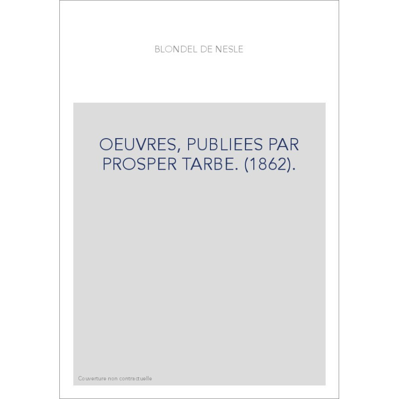 OEUVRES, PUBLIEES PAR PROSPER TARBE. (1862).