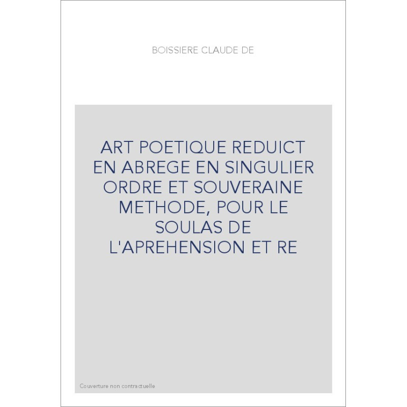 ART POETIQUE REDUICT EN ABREGE EN SINGULIER ORDRE ET SOUVERAINE METHODE, POUR LE SOULAS DE L'APREHENSION ET R