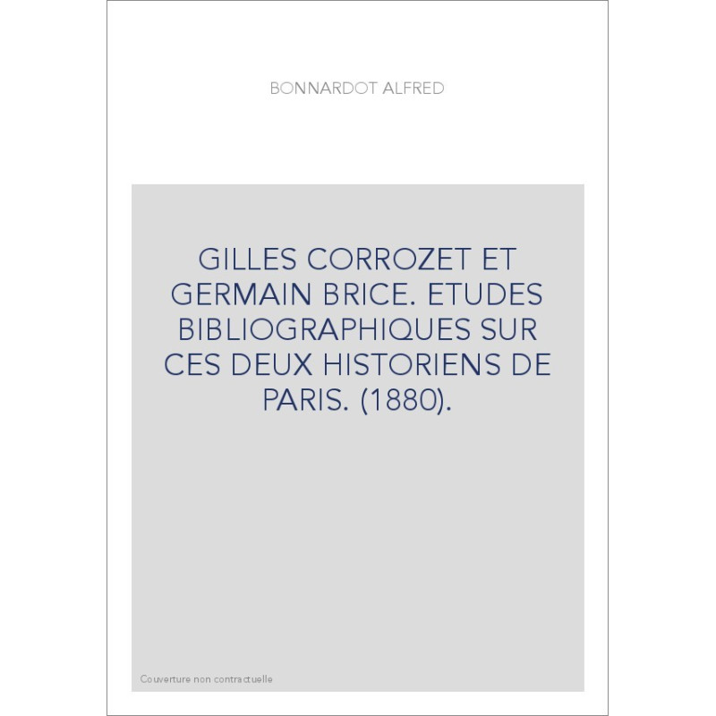 GILLES CORROZET ET GERMAIN BRICE. ETUDES BIBLIOGRAPHIQUES SUR CES DEUX HISTORIENS DE PARIS. (1880).