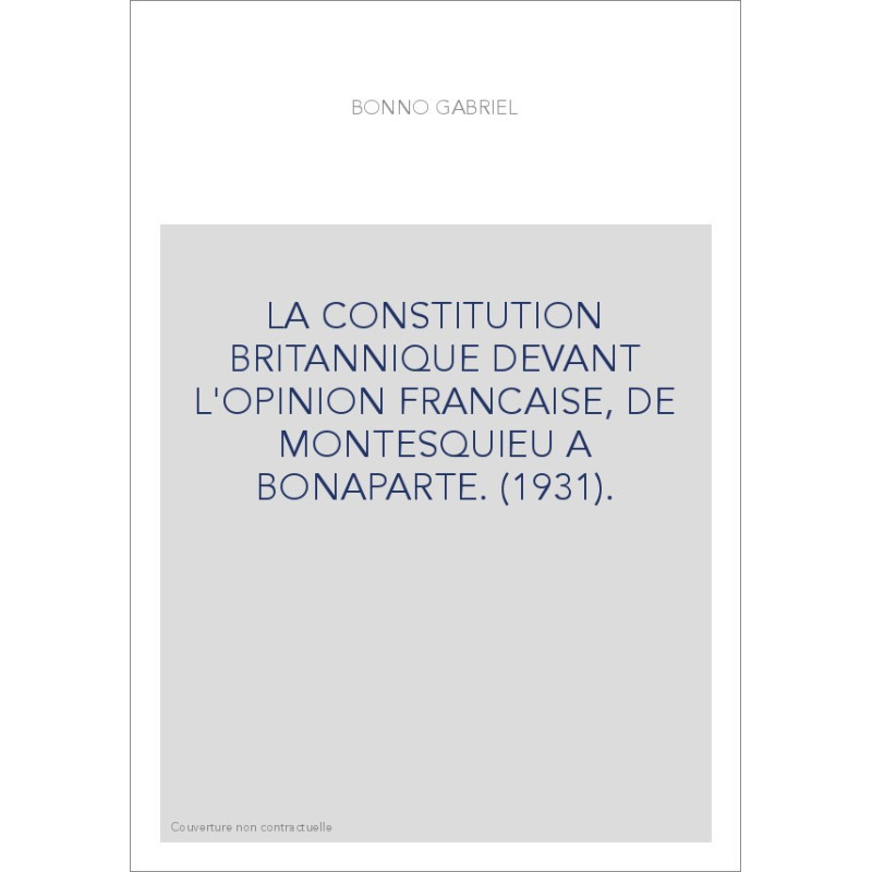 LA CONSTITUTION BRITANNIQUE DEVANT L'OPINION FRANCAISE, DE MONTESQUIEU A BONAPARTE. (1931).