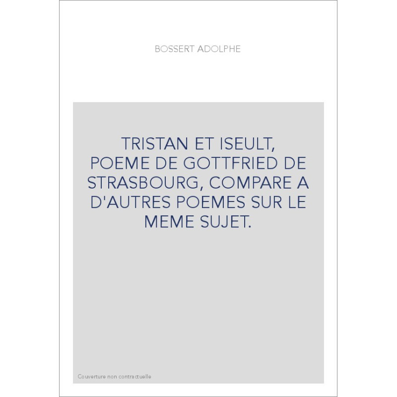 TRISTAN ET ISEULT, POEME DE GOTTFRIED DE STRASBOURG, COMPARE A D'AUTRES POEMES SUR LE MEME SUJET.