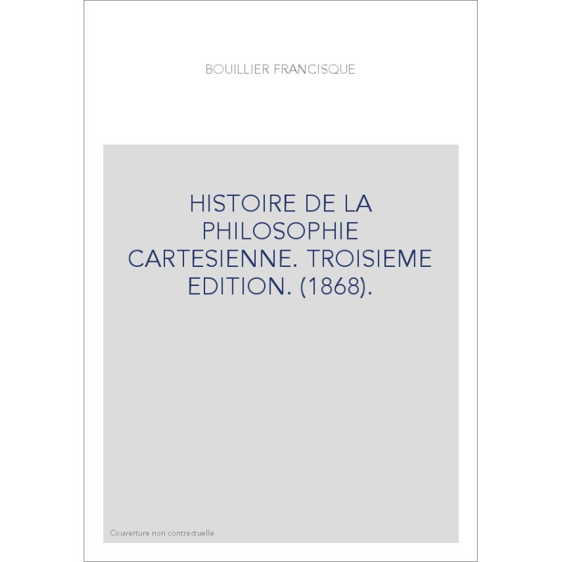 HISTOIRE DE LA PHILOSOPHIE CARTESIENNE. TROISIEME EDITION. (1868).
