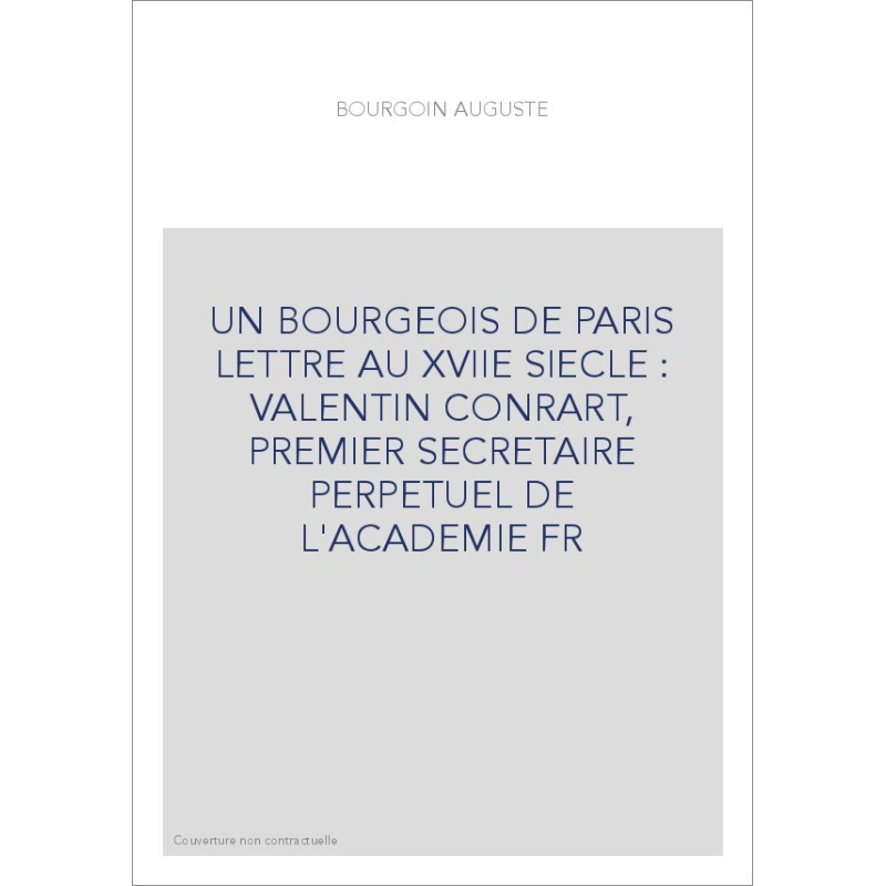 UN BOURGEOIS DE PARIS LETTRE AU XVIIE SIECLE : VALENTIN CONRART, PREMIER SECRETAIRE PERPETUEL DE L'ACADEMIE F