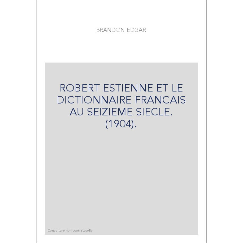 ROBERT ESTIENNE ET LE DICTIONNAIRE FRANCAIS AU SEIZIEME SIECLE. (1904). View larger
