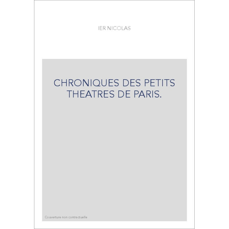CHRONIQUES DES PETITS THEATRES DE PARIS.(1883). View larger