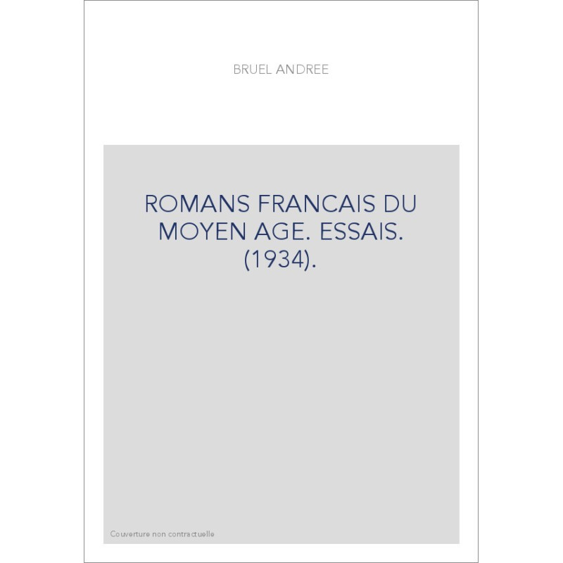 ROMANS FRANCAIS DU MOYEN AGE. ESSAIS. (1934).