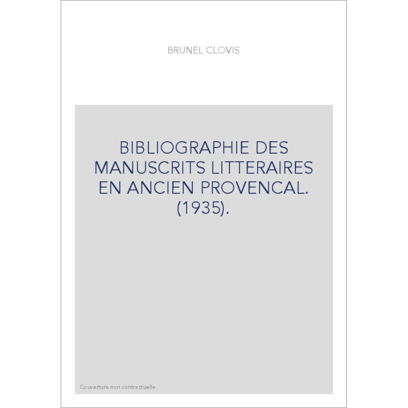 BIBLIOGRAPHIE DES MANUSCRITS LITTERAIRES EN ANCIEN PROVENCAL. (1935).