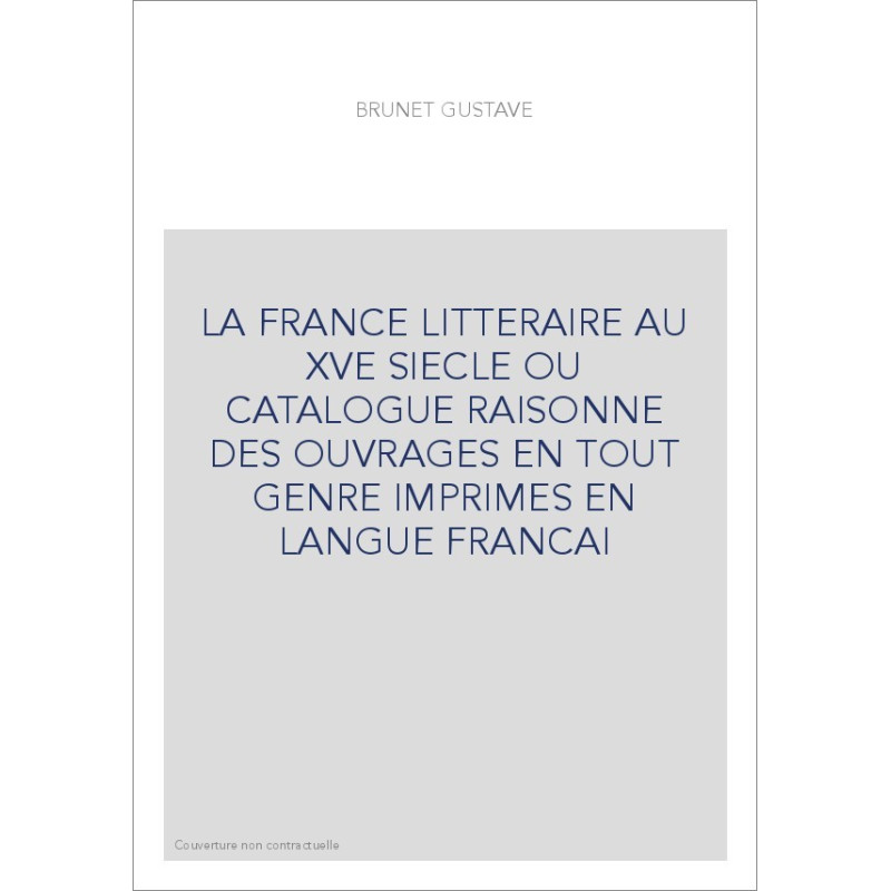 LA FRANCE LITTERAIRE AU XVE SIECLE OU CATALOGUE RAISONNE DES OUVRAGES EN TOUT GENRE IMPRIMES EN LANGUE FRANCAI
