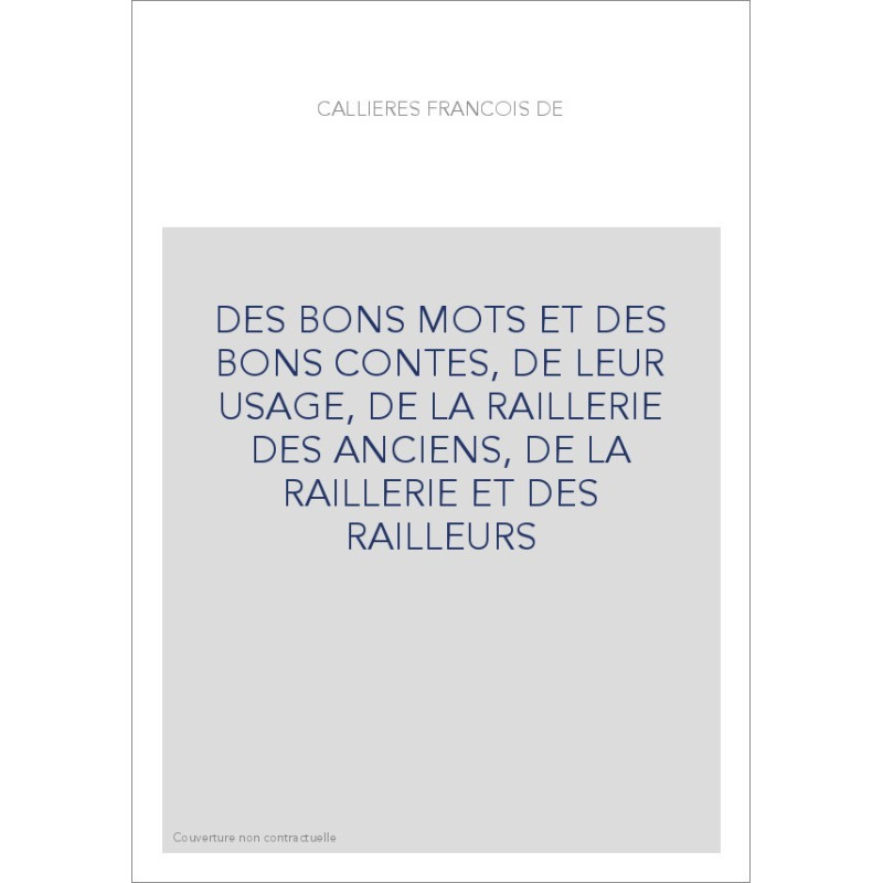 DES BONS MOTS ET DES BONS CONTES, DE LEUR USAGE, DE LA RAILLERIE DES ANCIENS, DE LA RAILLERIE ET DES RAILLEURS