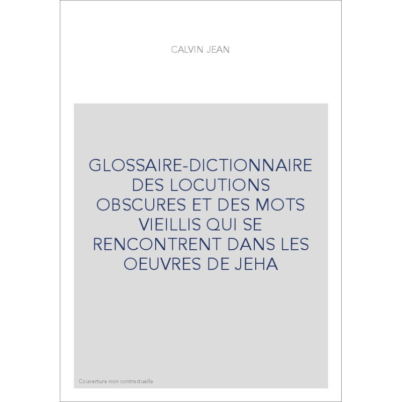 GLOSSAIRE-DICTIONNAIRE DES LOCUTIONS OBSCURES ET DES MOTS VIEILLIS QUI SE RENCONTRENT DANS LES OEUVRES DE JEHA